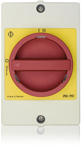 具有紧急功能的主开关配有红色手柄和对比鲜明的黄色面板。
